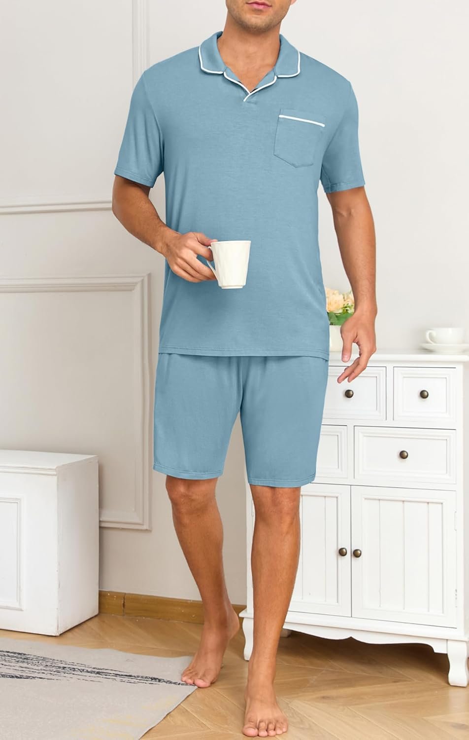 Mens Pajamas Set Summer Pjs Sets Lightweight Short Sleeve Pajama Soft Sleepwear Loungewear with Pockets